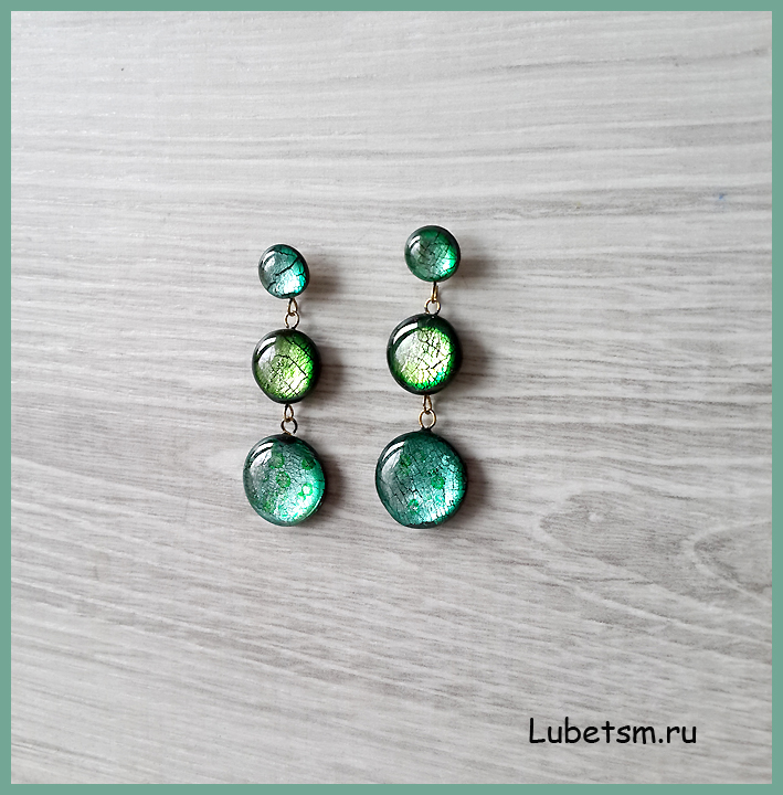 Украшения выполнены на основе полимерной глины, использованы - поталь, алкогольные чернила, эпоксидная смола, фурнитура под бронзу.