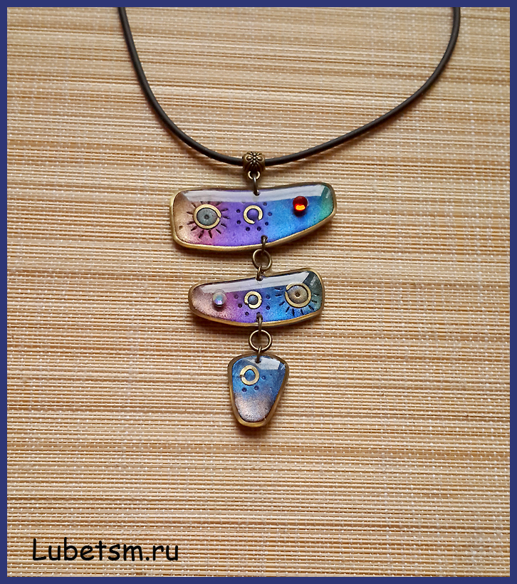 Украшения сделаны из полимерной глины, а так же проволоки, перлекса. Покрыто эпоксидной смолой. Кулоны из 3 частей - 800 р. Кулоны - 700 р. Брошка - 600 р. Серьги - 550 р.